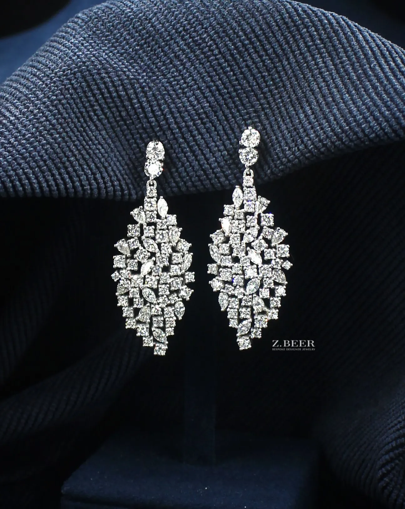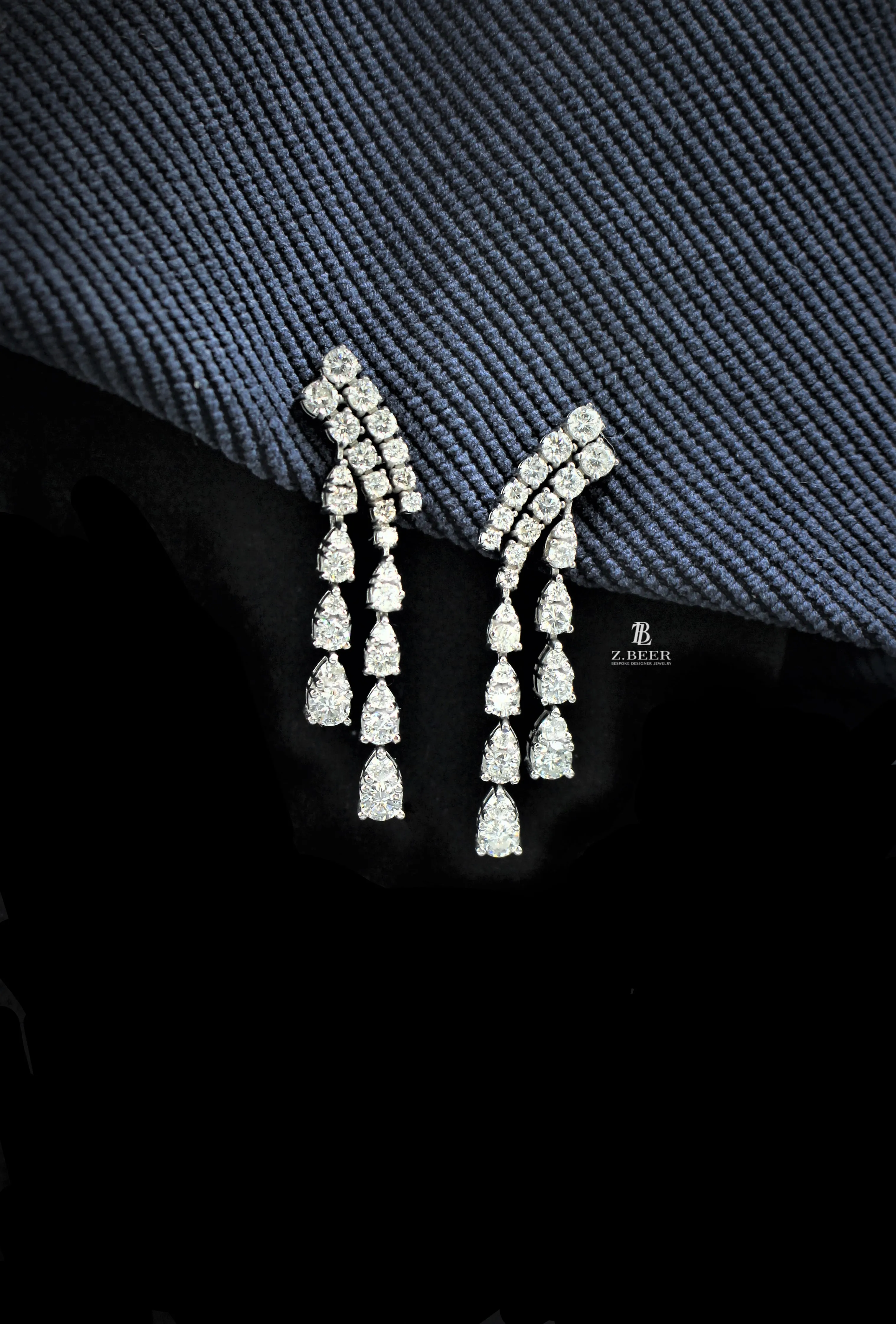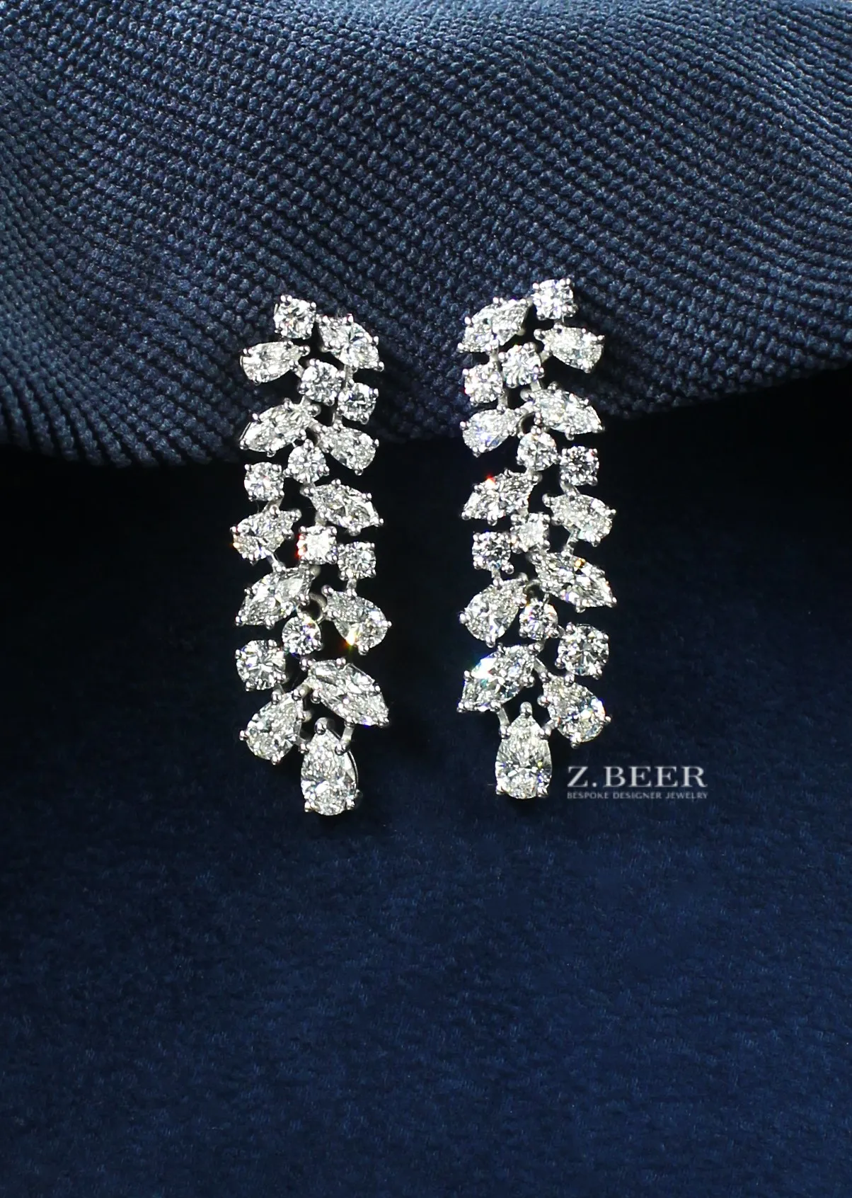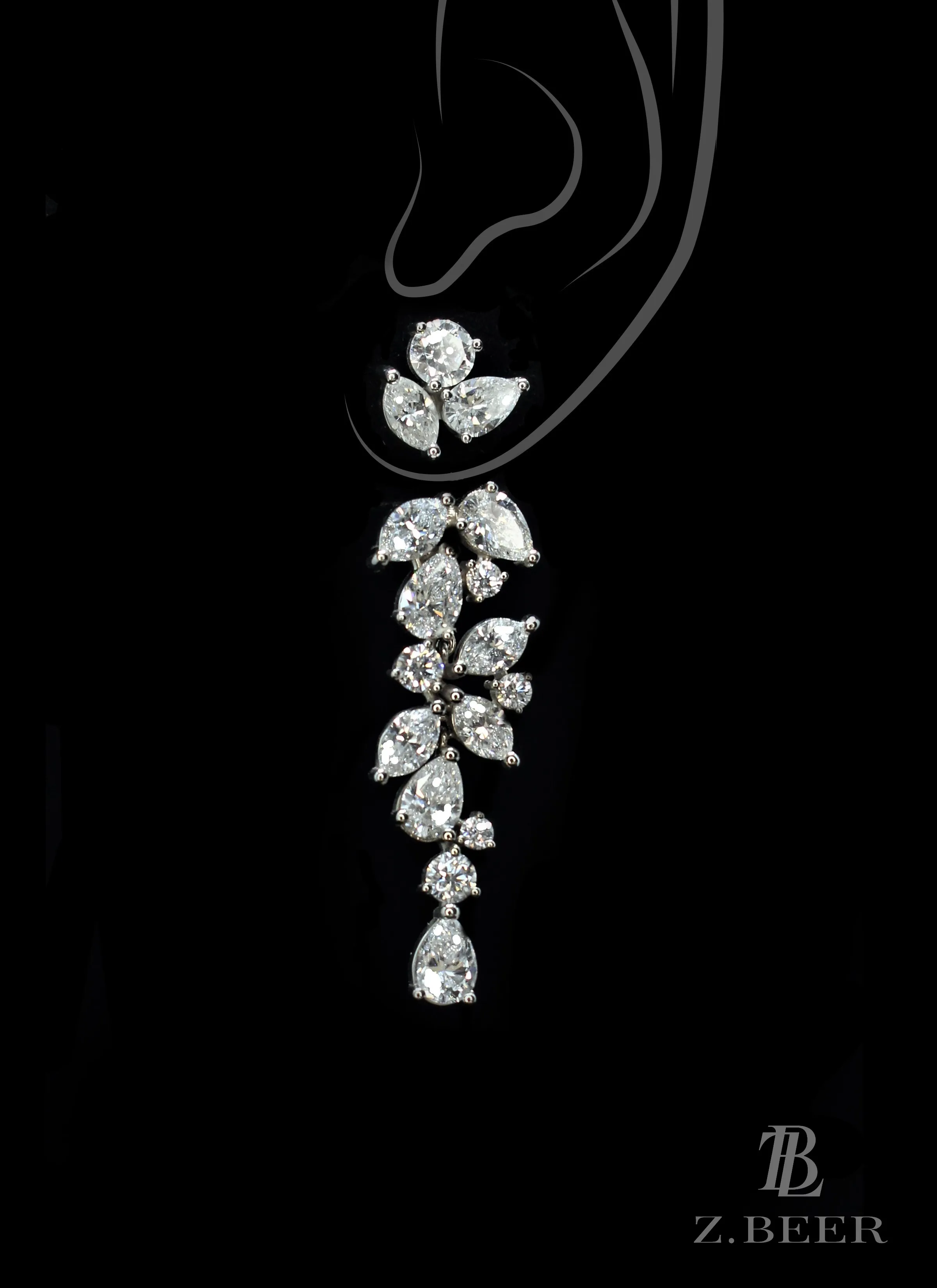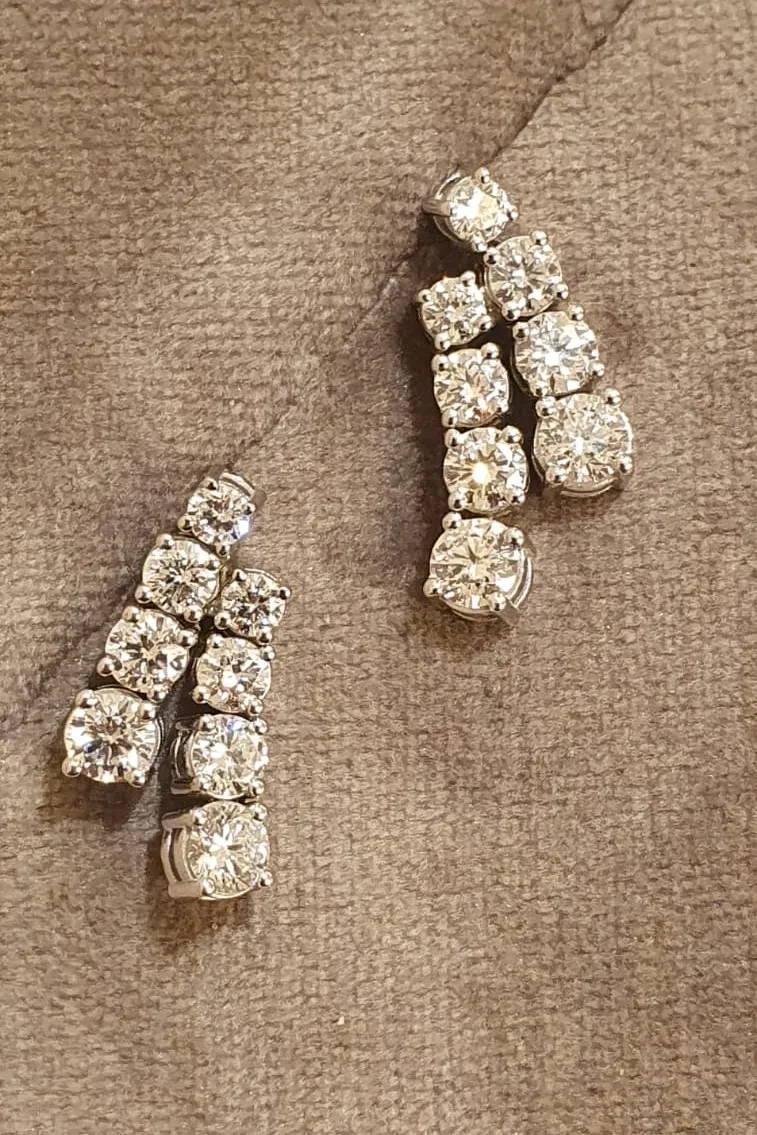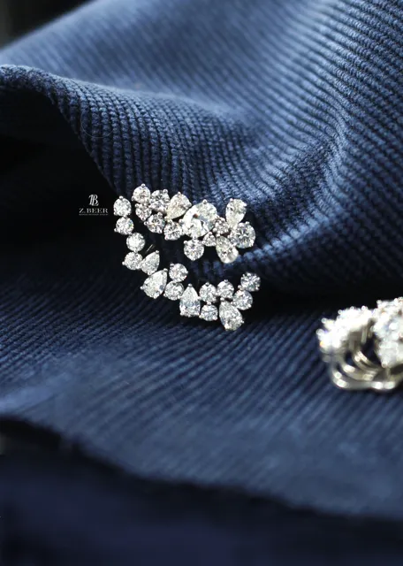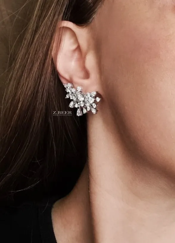 Climber earrings in 14K white gold, set with oval and multi-shaped diamonds for a total of around 8.64 carat.
