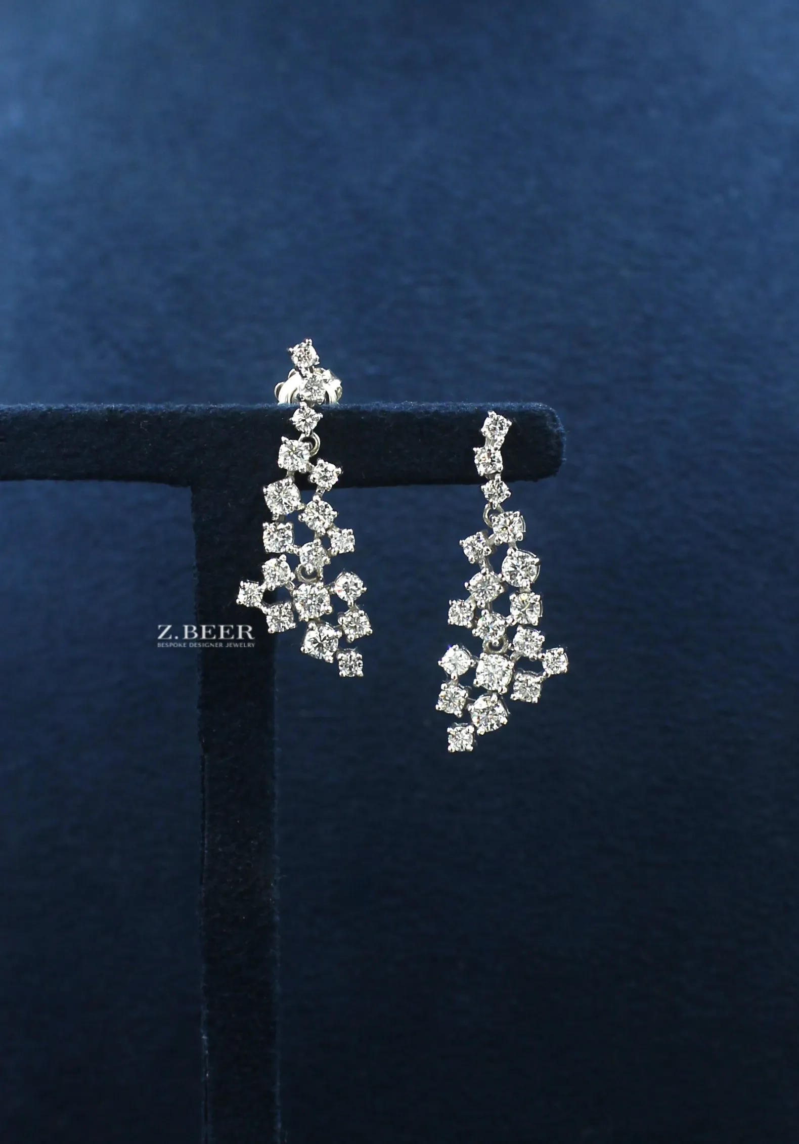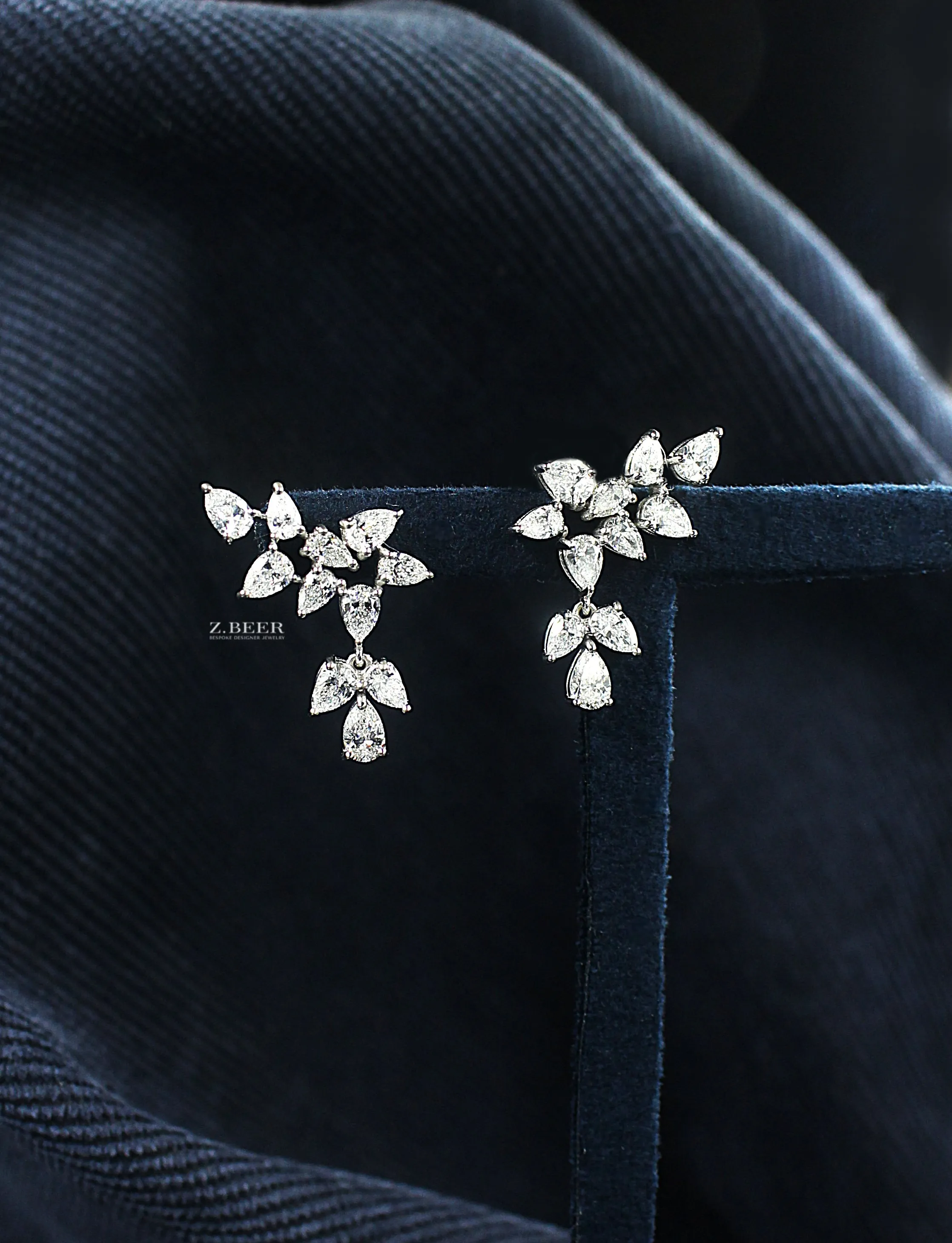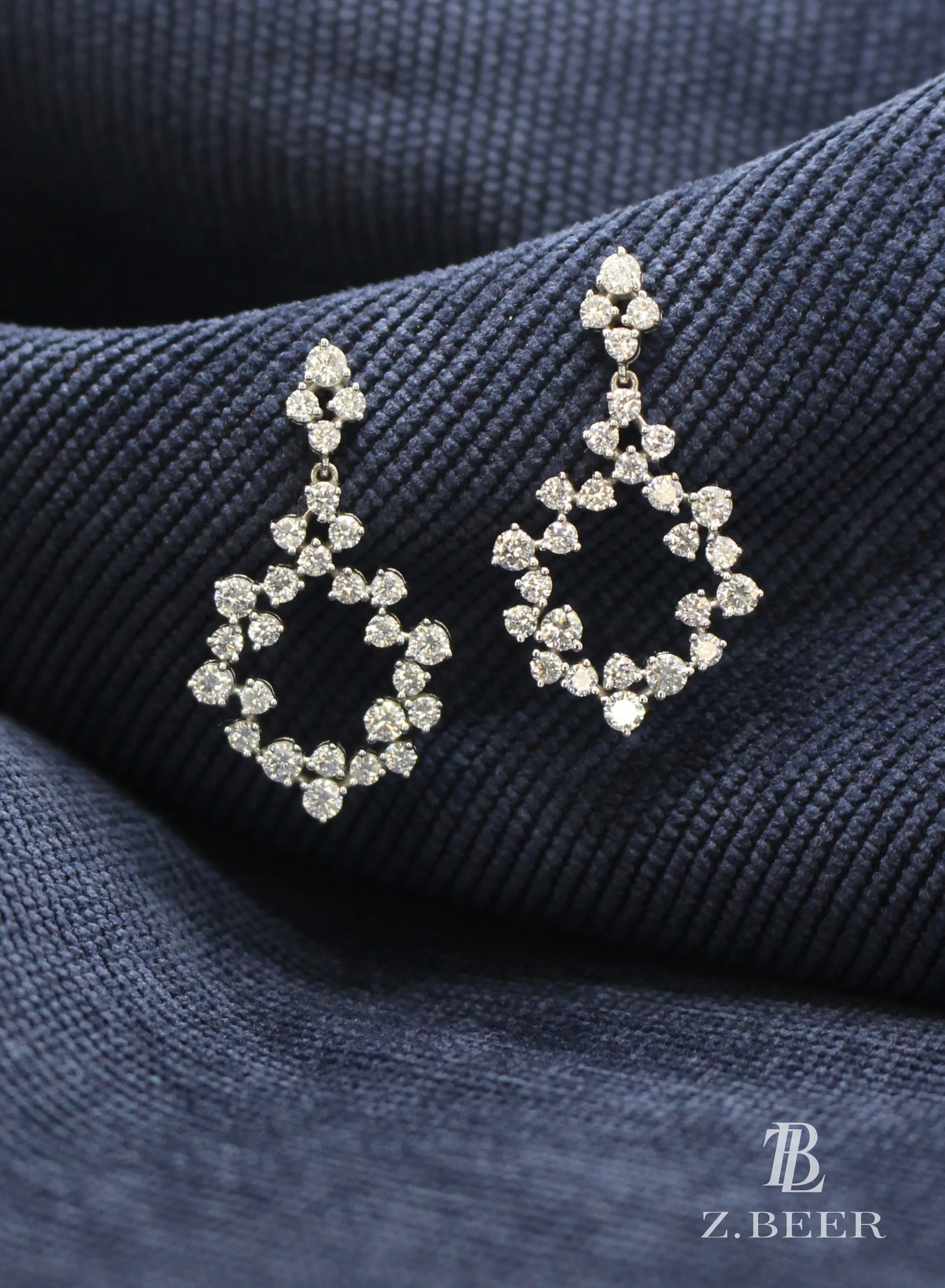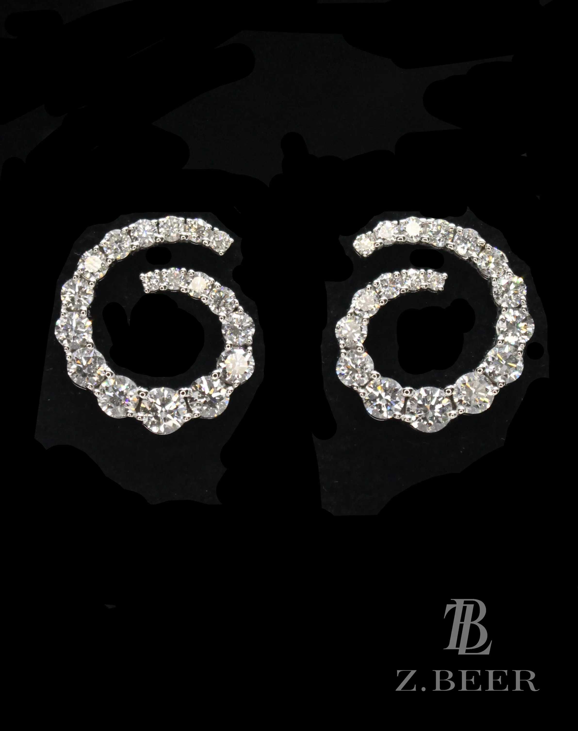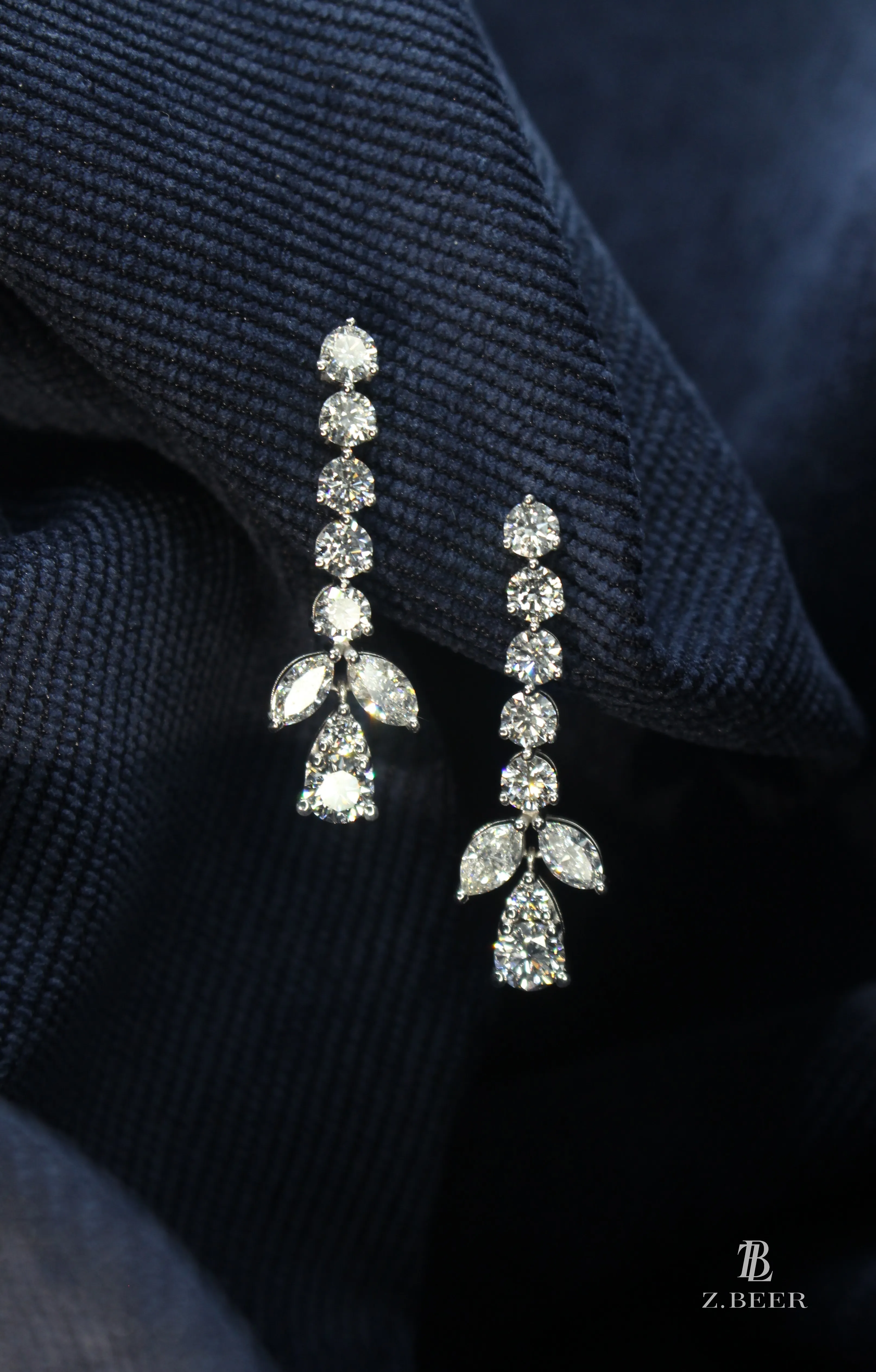 Climber earrings in 14K white gold, set with oval and multi-shaped diamonds for a total of around 8.64 carat.