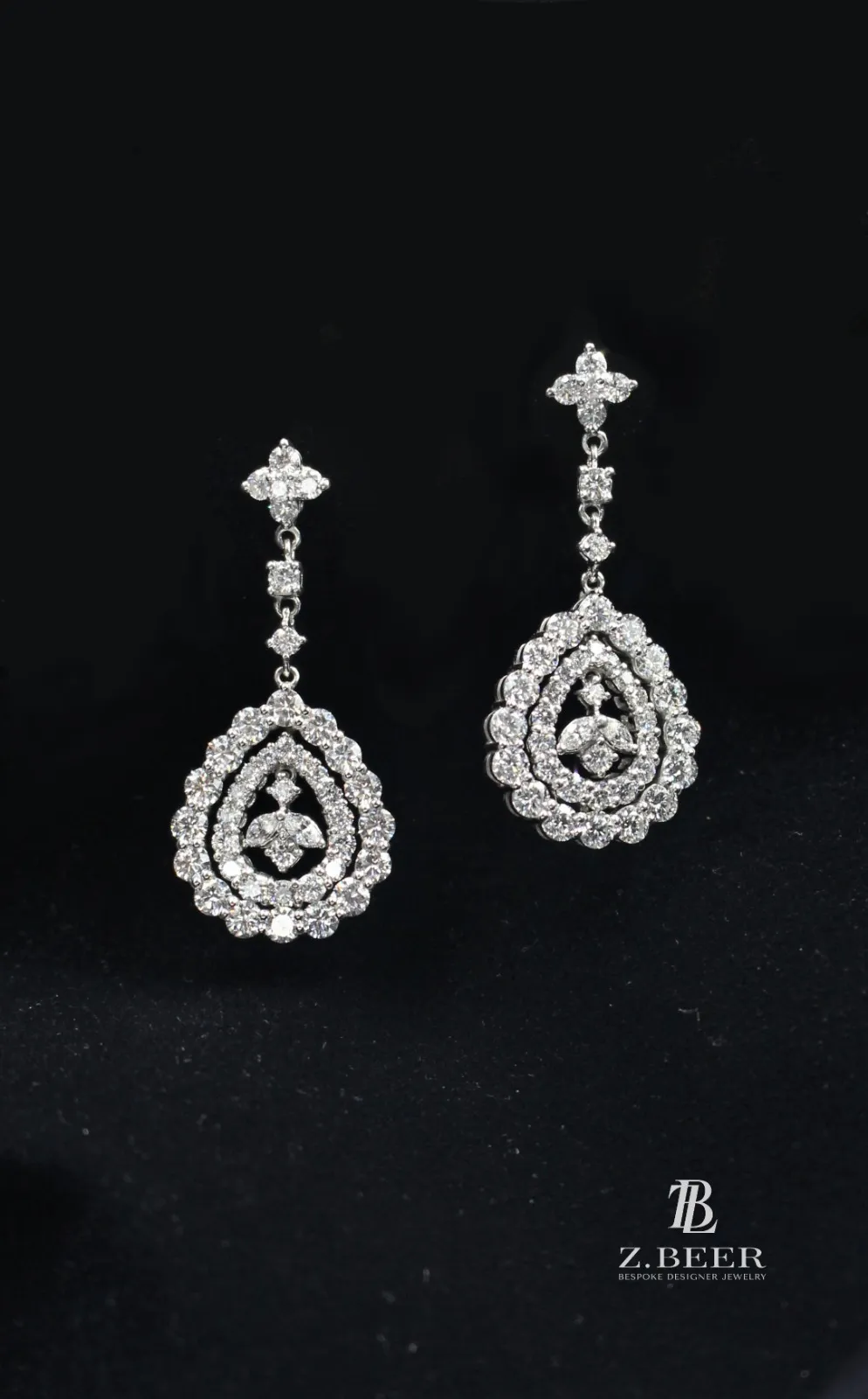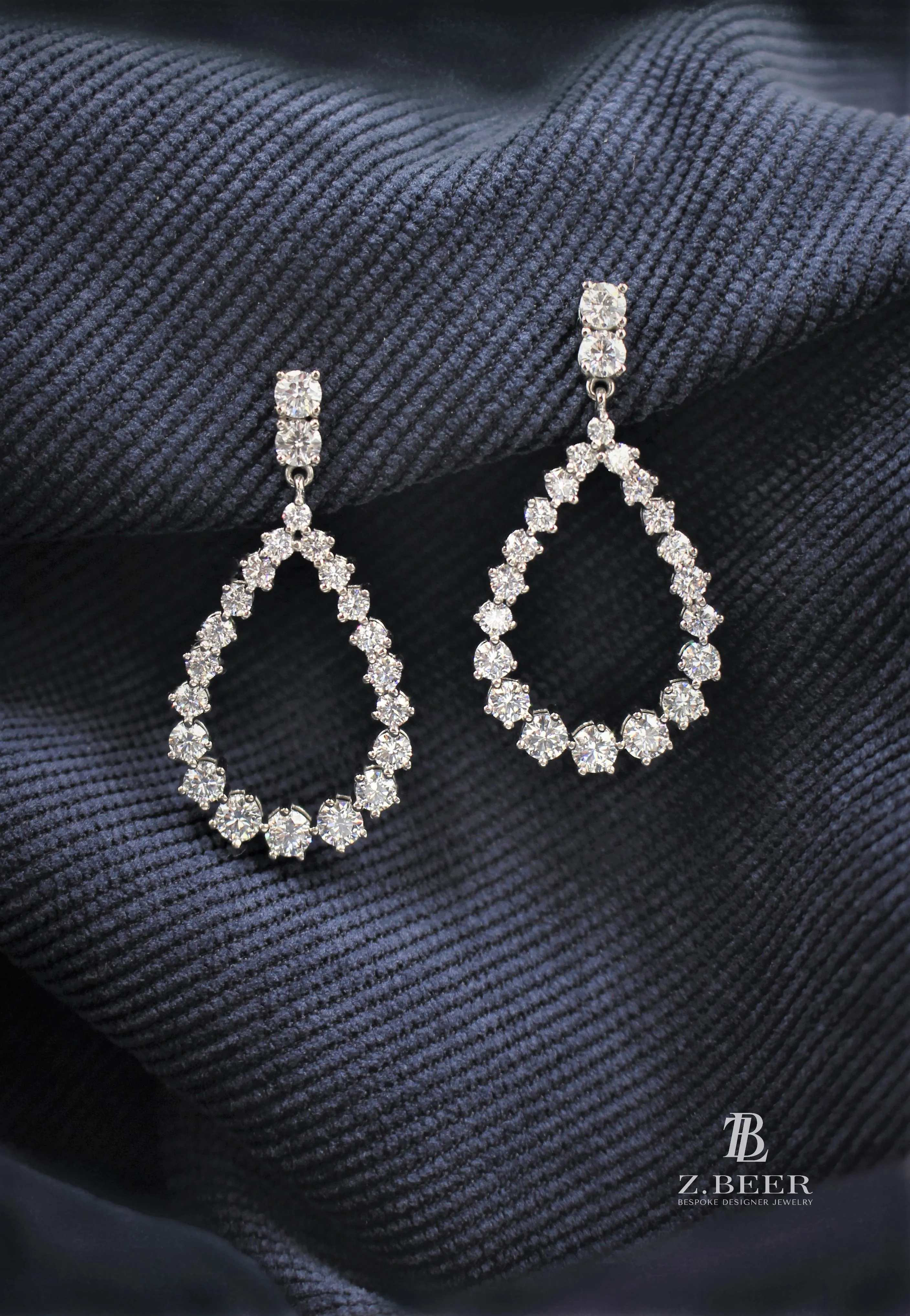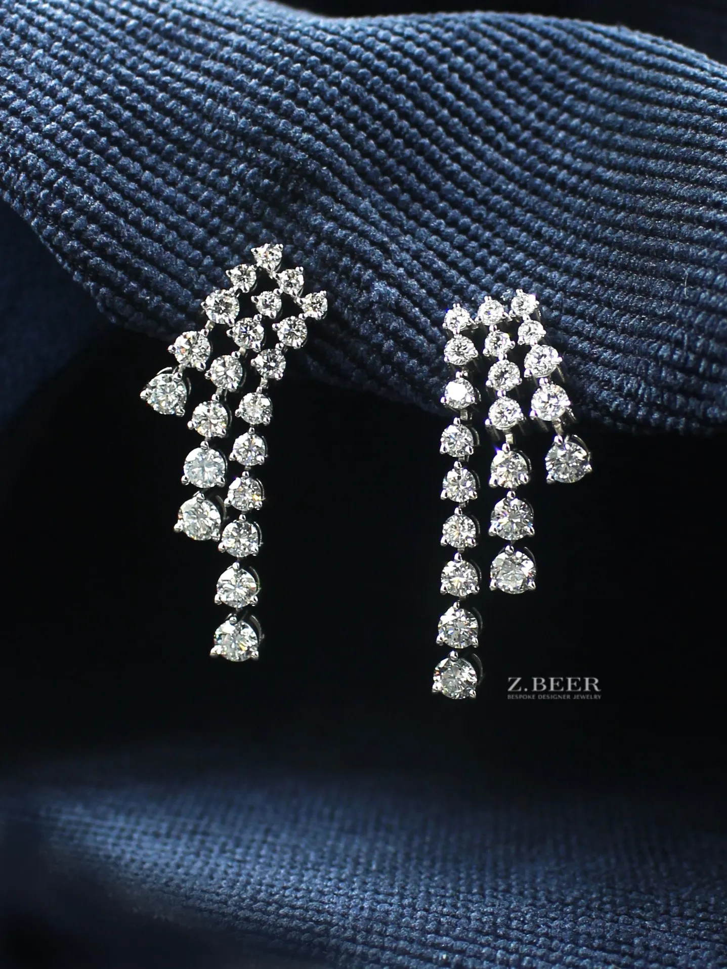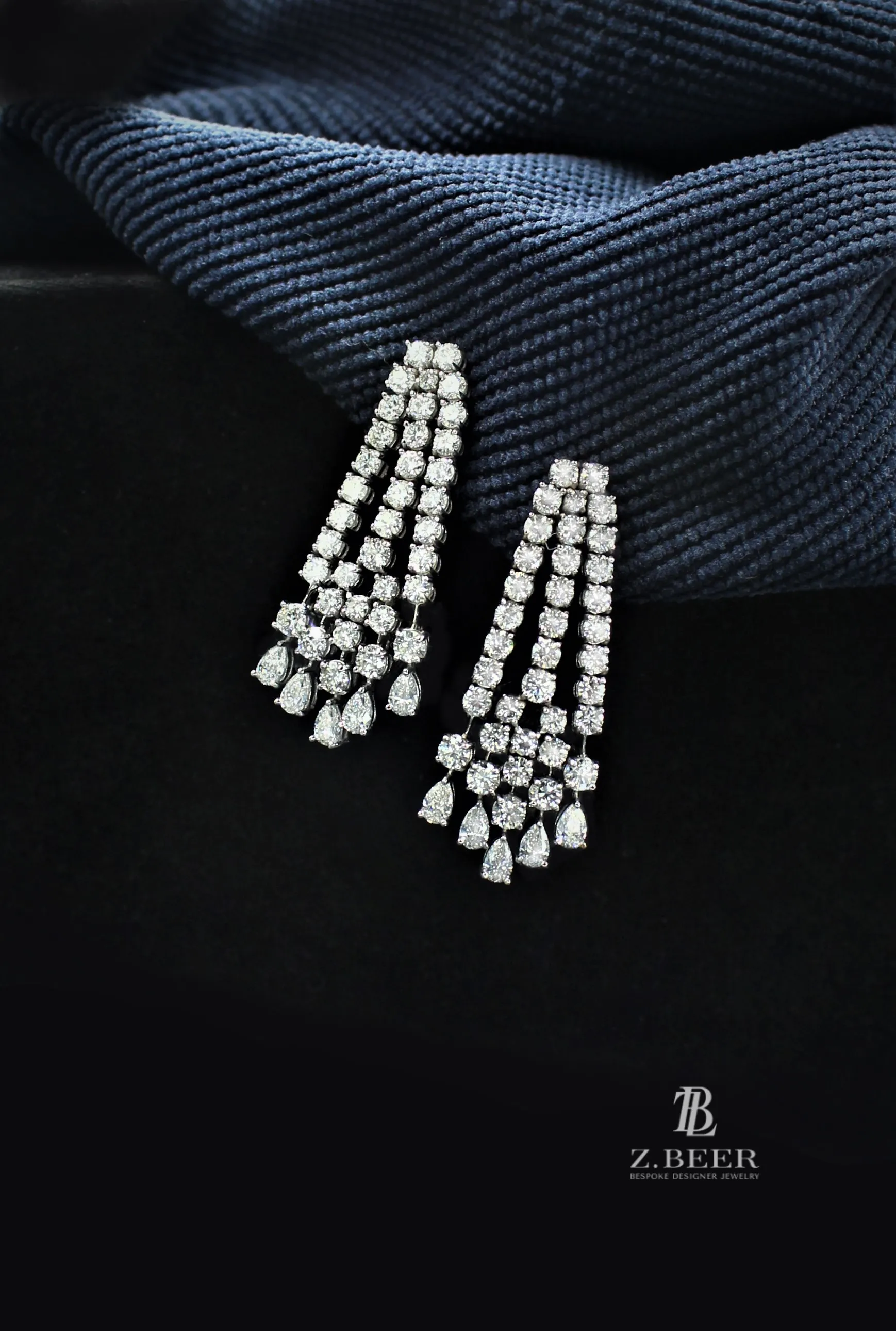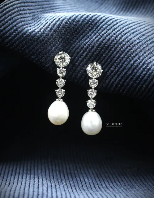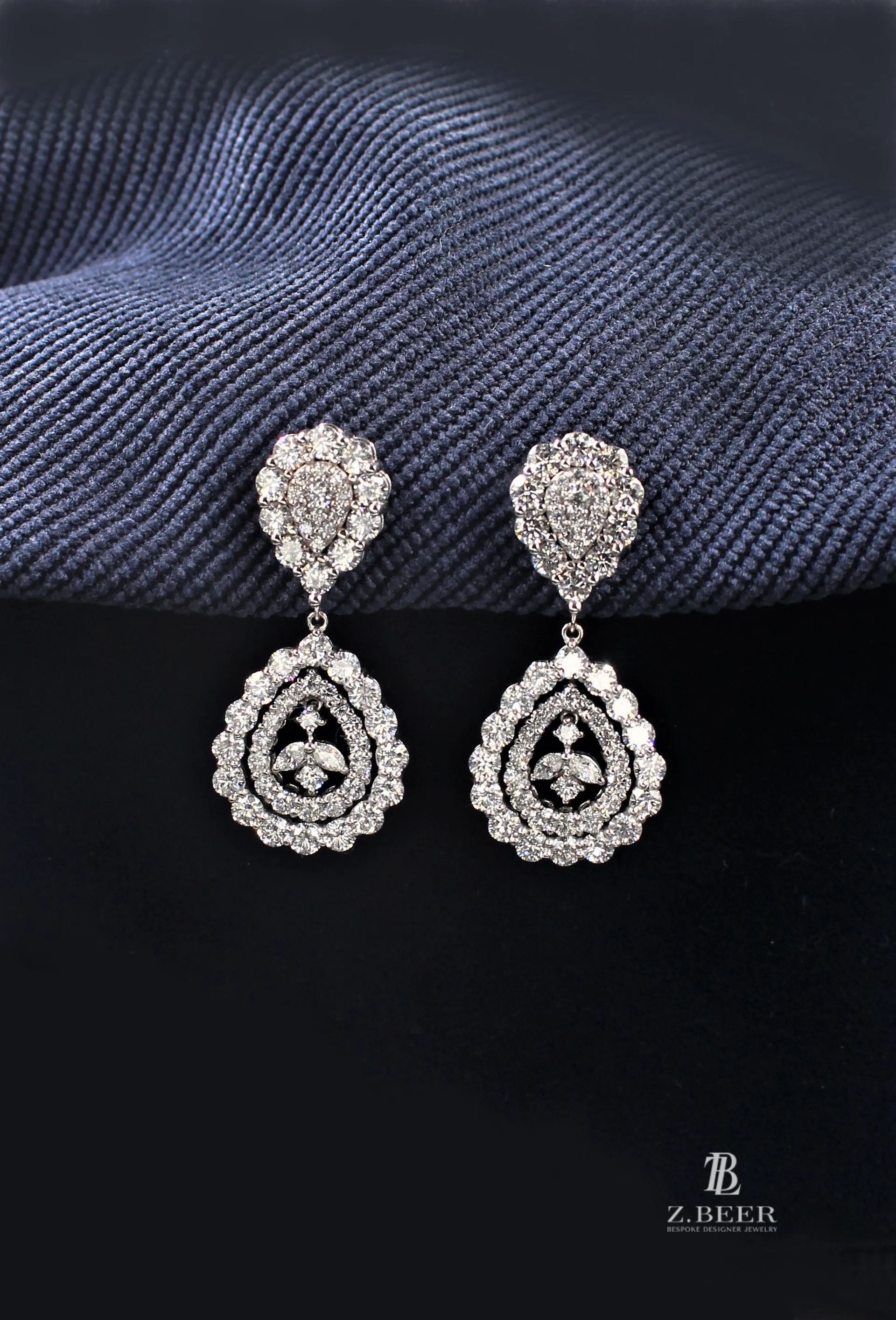 Climber earrings in 14K white gold, set with oval and multi-shaped diamonds for a total of around 8.64 carat.