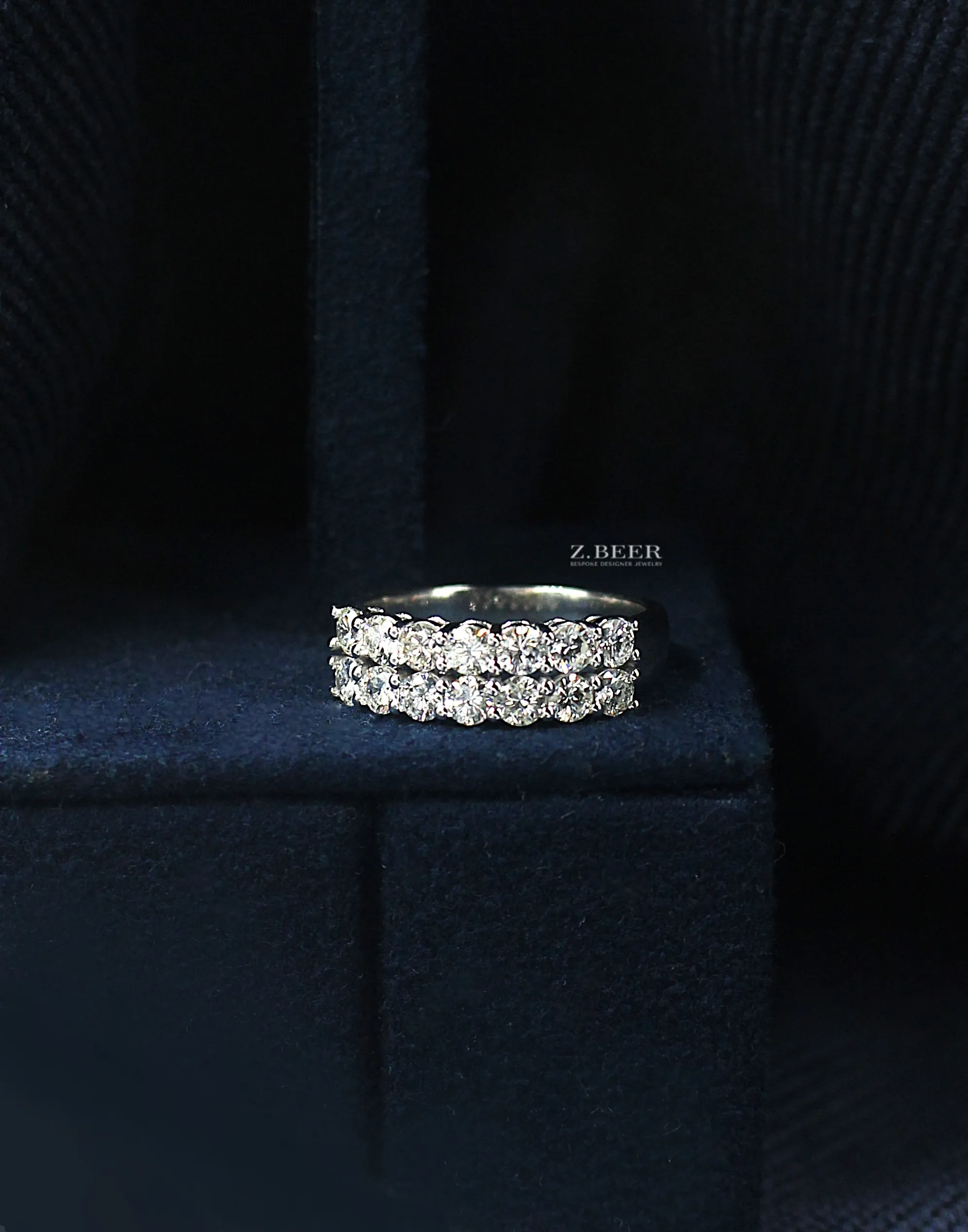 Eternity ring in 14k white gold, set with emeralds and sapphires, and brilliant-cut diamonds for a total of around 0.42 carat.