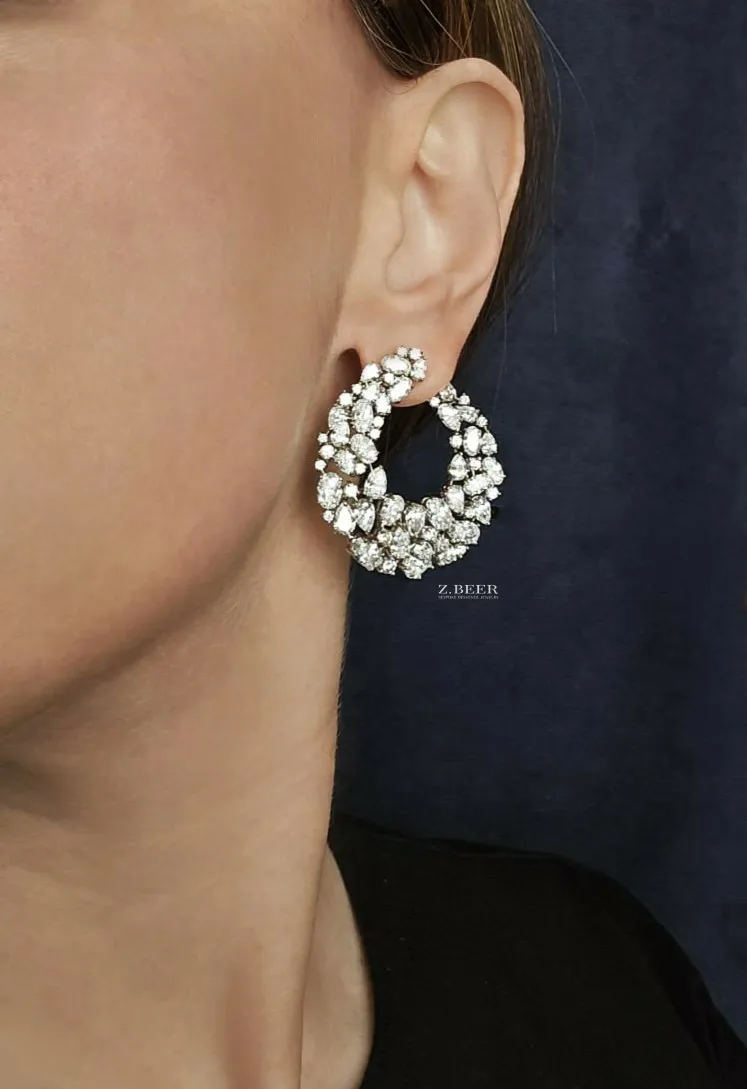 Loop earrings in 14K white gold, set with oval, pear shaped and round brilliant-cut diamonds for a total of around 17.35 carat.