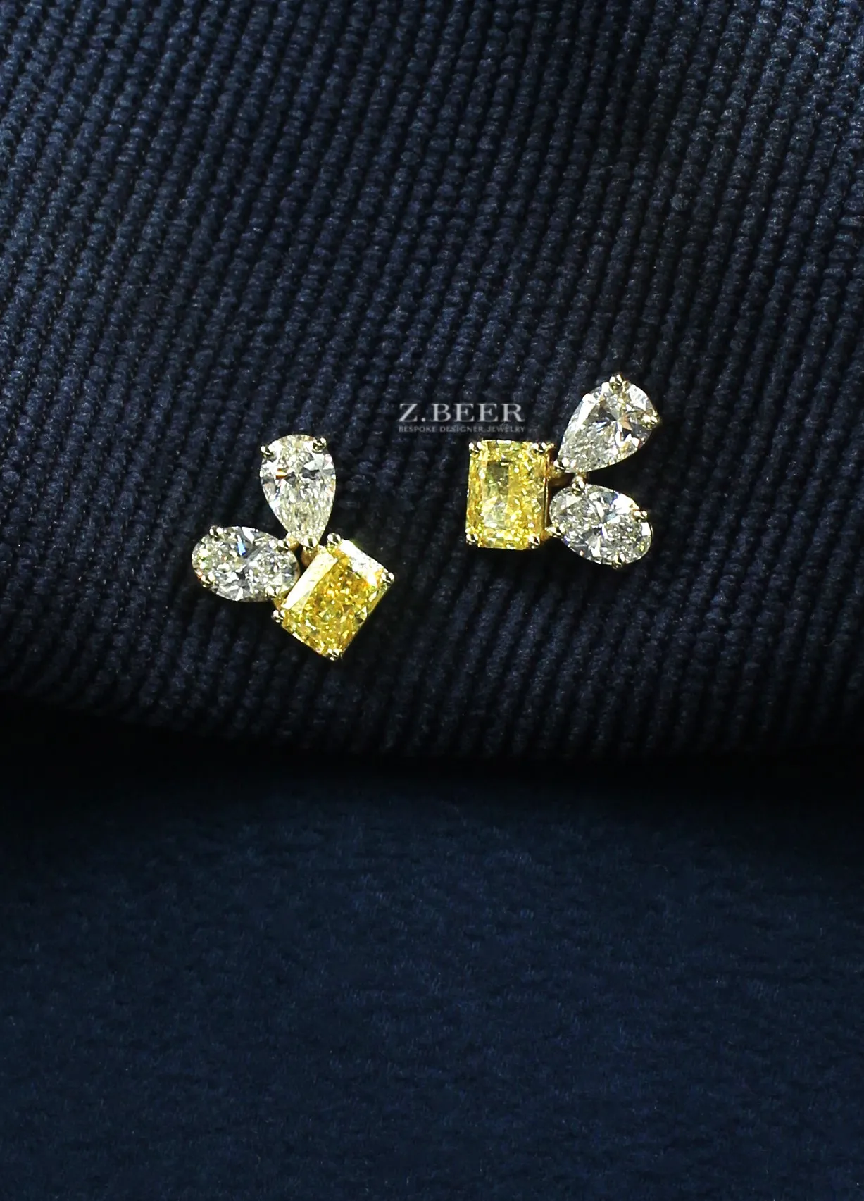 Snail earrings in 14K white gold, set with pear shaped and brilliant-cut round diamonds for a total of around 2.71 carat.