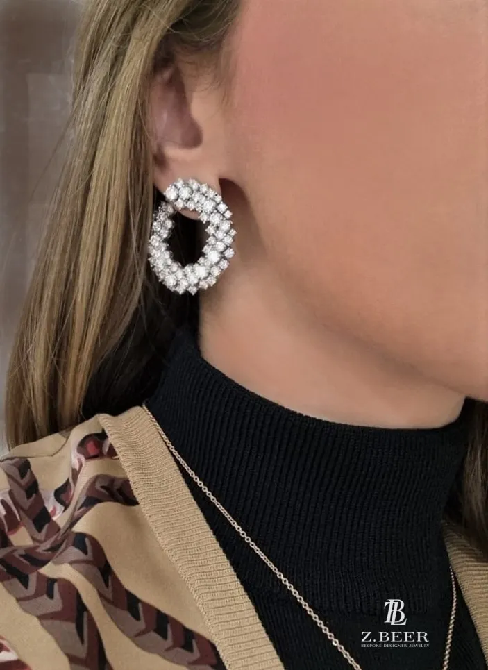 Gateway hoop earrings in 14K white gold, set with brilliant-cut round diamonds for a total of around 12.46 carat.