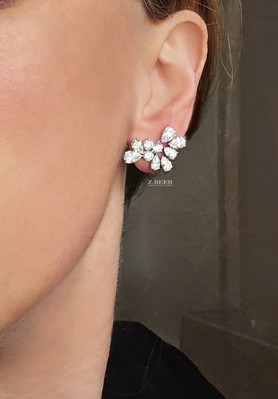 Climbing earrings, in 14K white gold, set with Pear shaped & brilliant-cut round diamonds, for a total of around 7.06 carat.