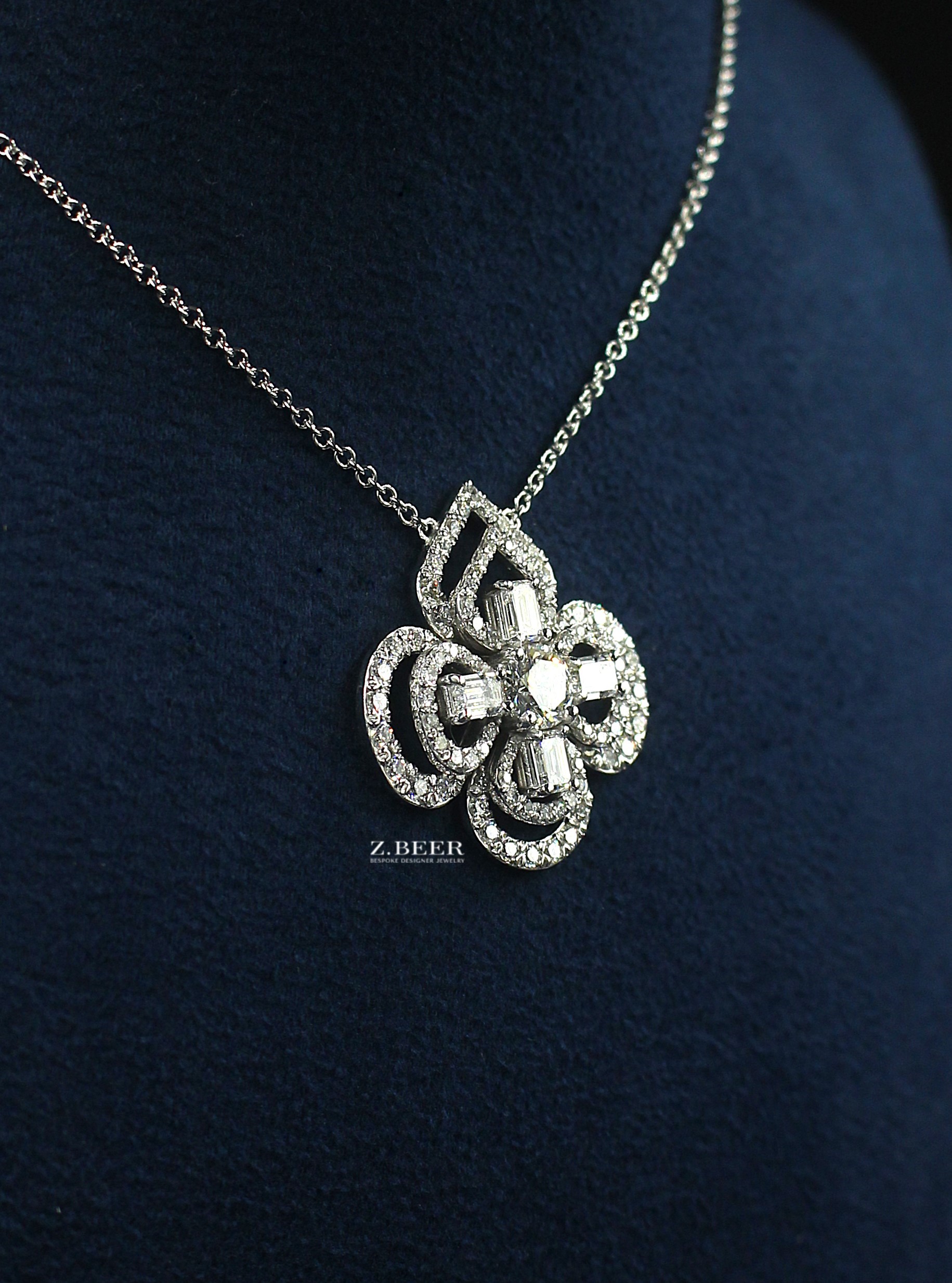 Diamond pendant, in 14K yellow gold, set with emerald cut & brilliant-cut round diamonds, for a total of around 2.91 carat.