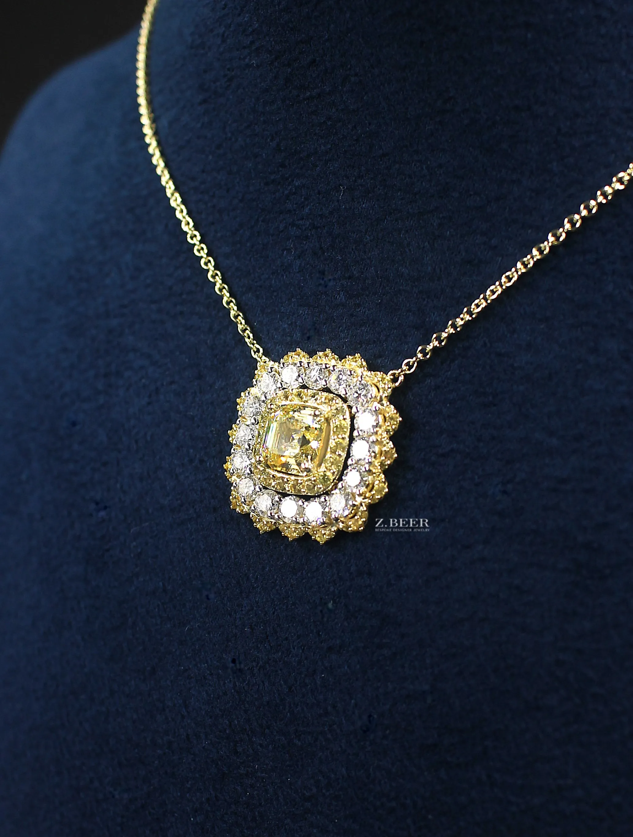 Diamond pendant, in 14K yellow gold, set with 2.26 carat yellow sapphire gemstone. brilliant-cut round diamonds, for a total of around 1.54 carat.