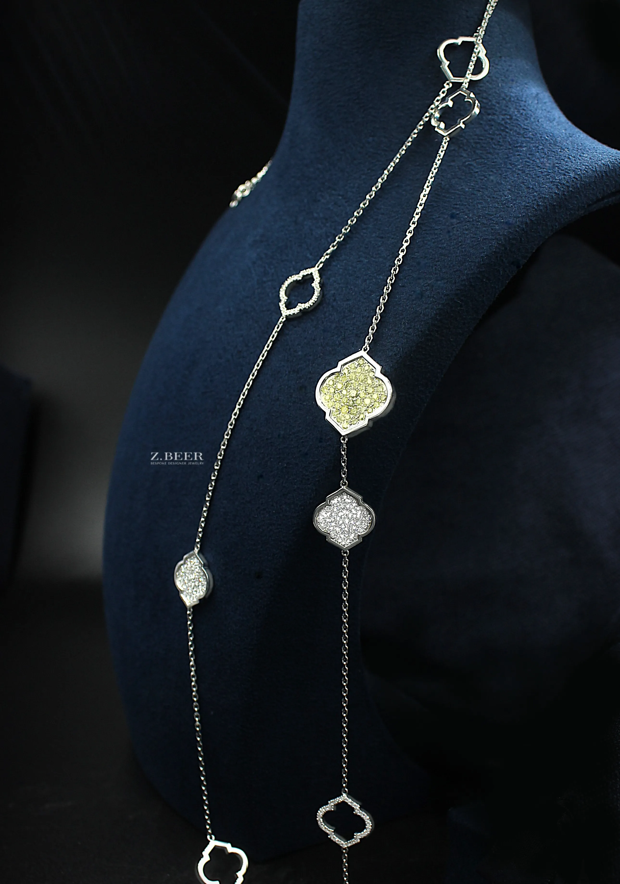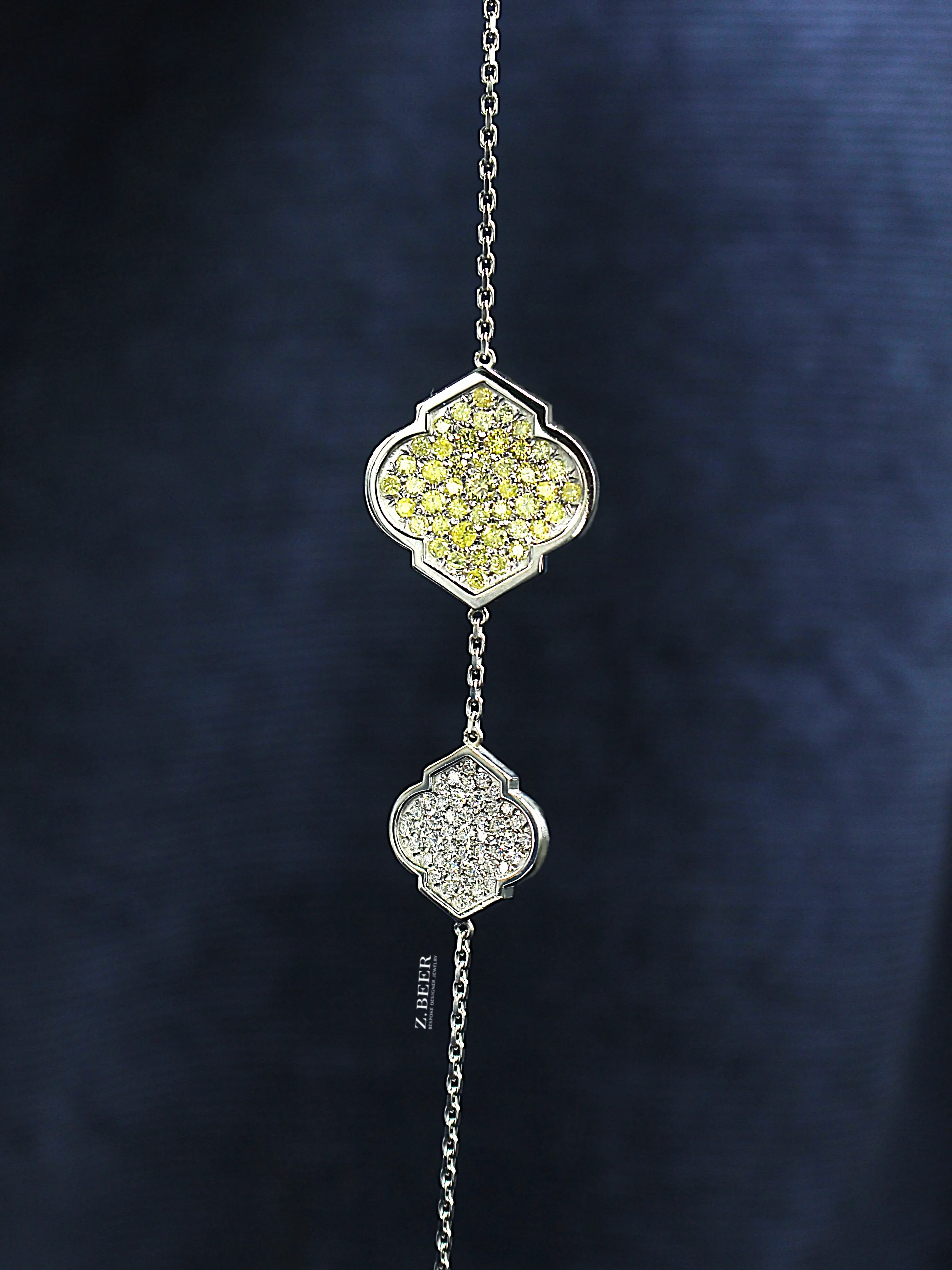 Diamond necklace, in 14K white gold, set with yellow & white brilliant-cut round diamonds, for a total of around 2.83 carat.