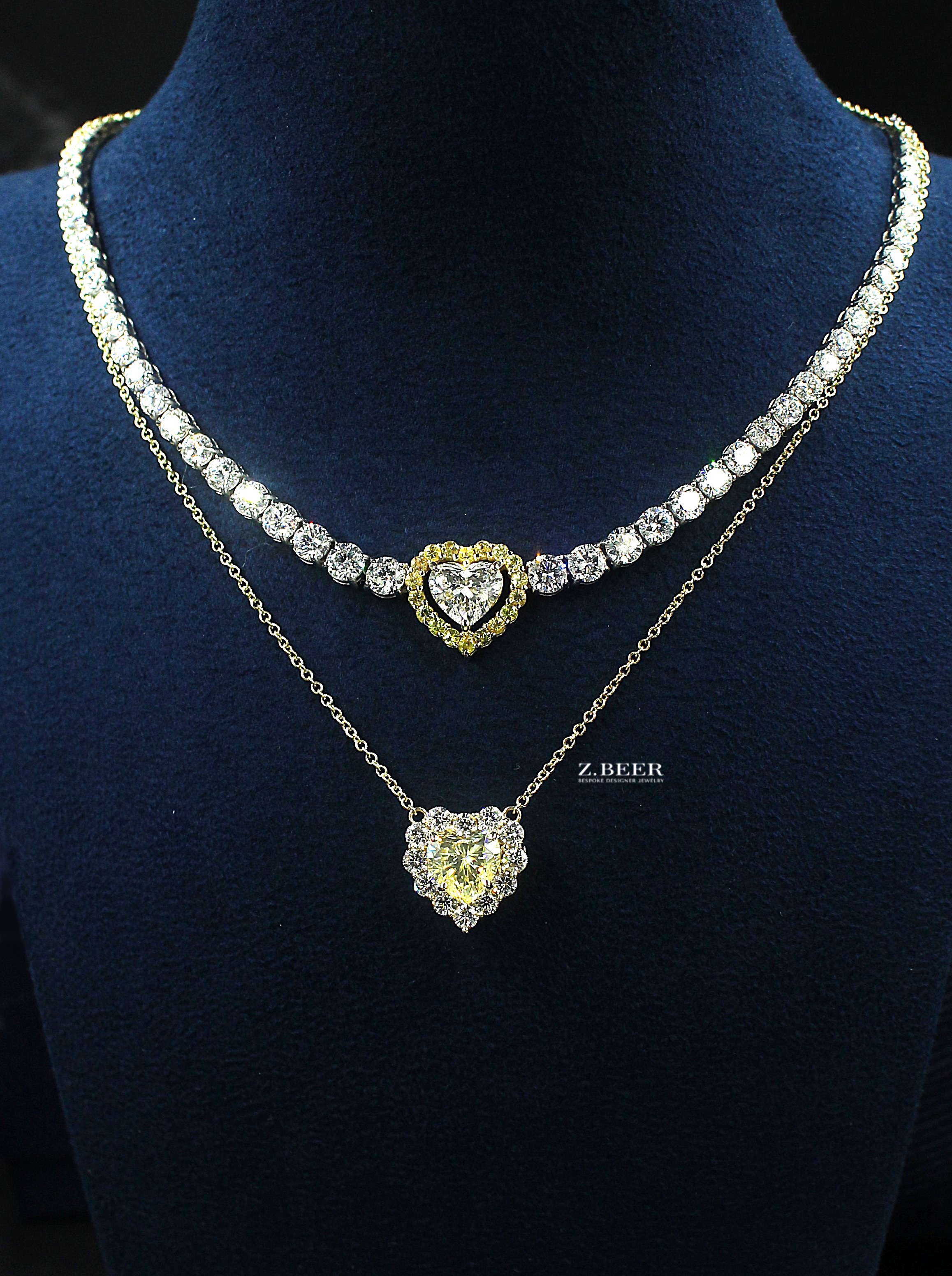 Diamond necklace, in 14K yellow and white gold, set with 0.98ct yellow stones, 2.25 carat heart shaped diamond, brilliant-cut round diamonds, for a total of around 9.84 carat.