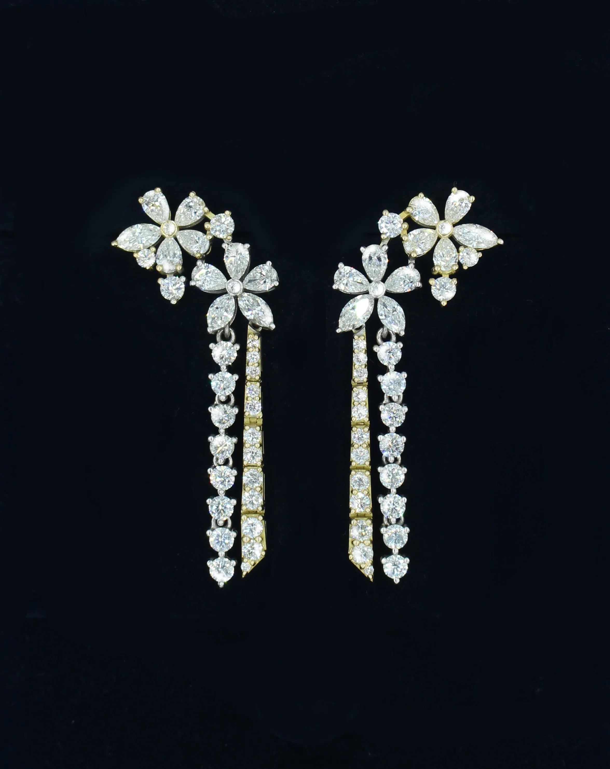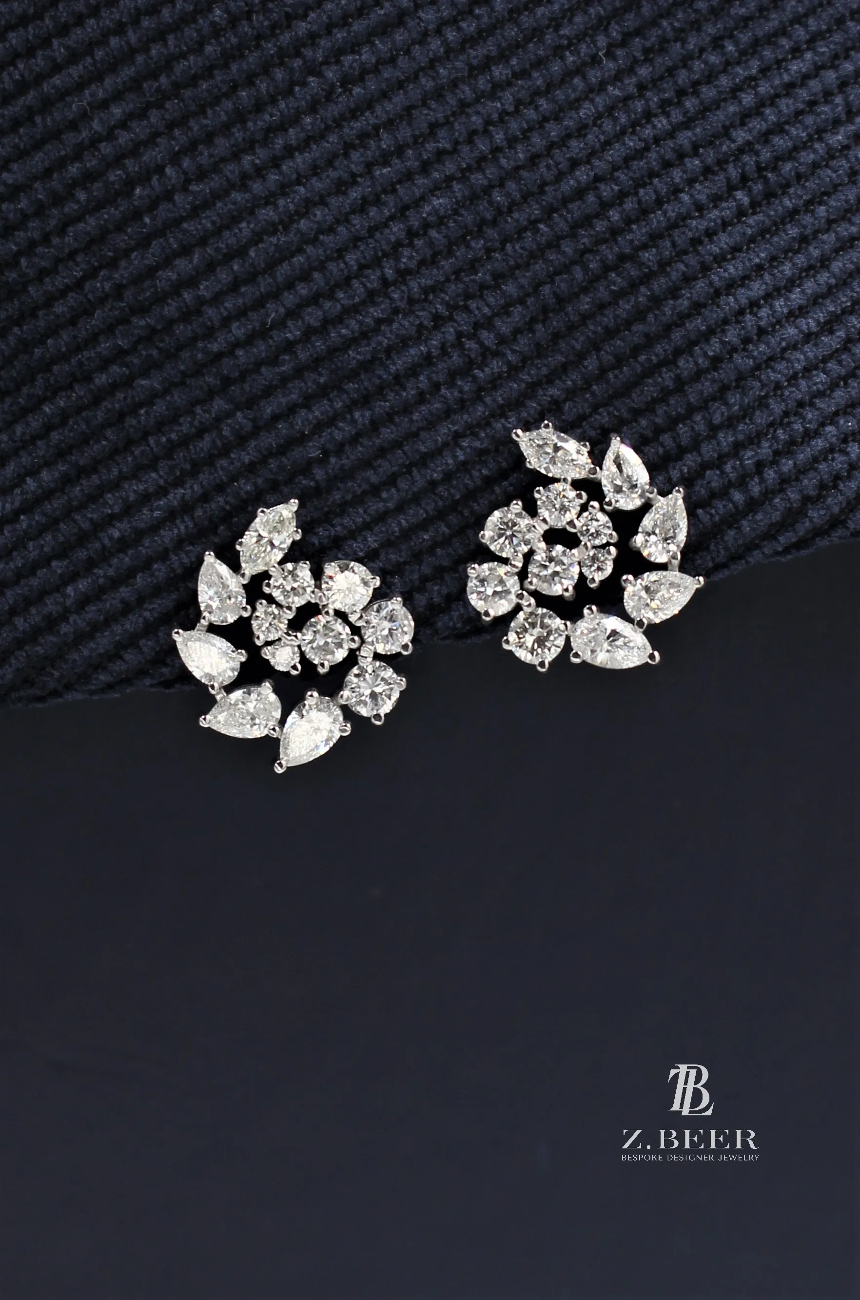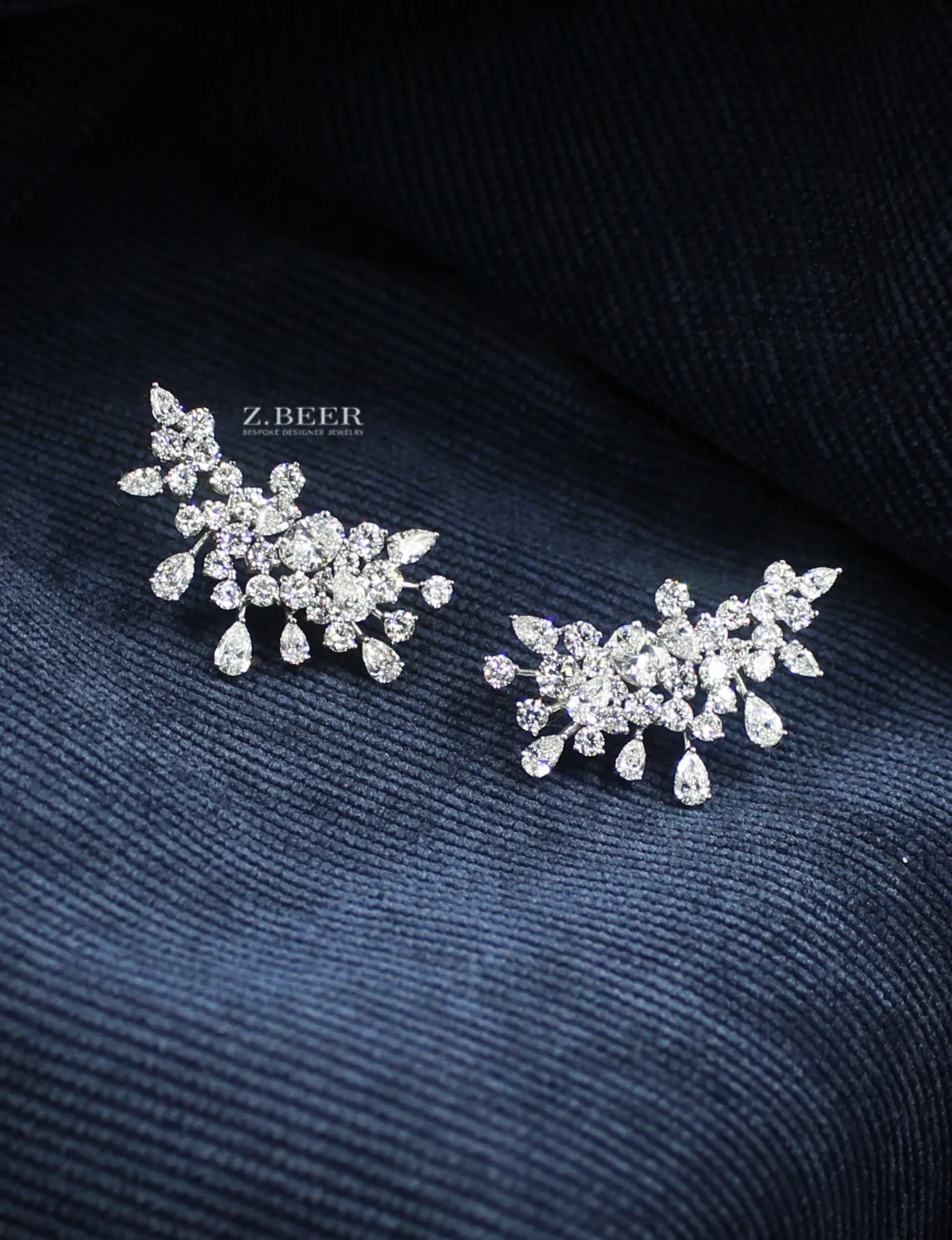 Snail earrings in 14K white gold, set with pear shaped and brilliant-cut round diamonds for a total of around 2.71 carat.
