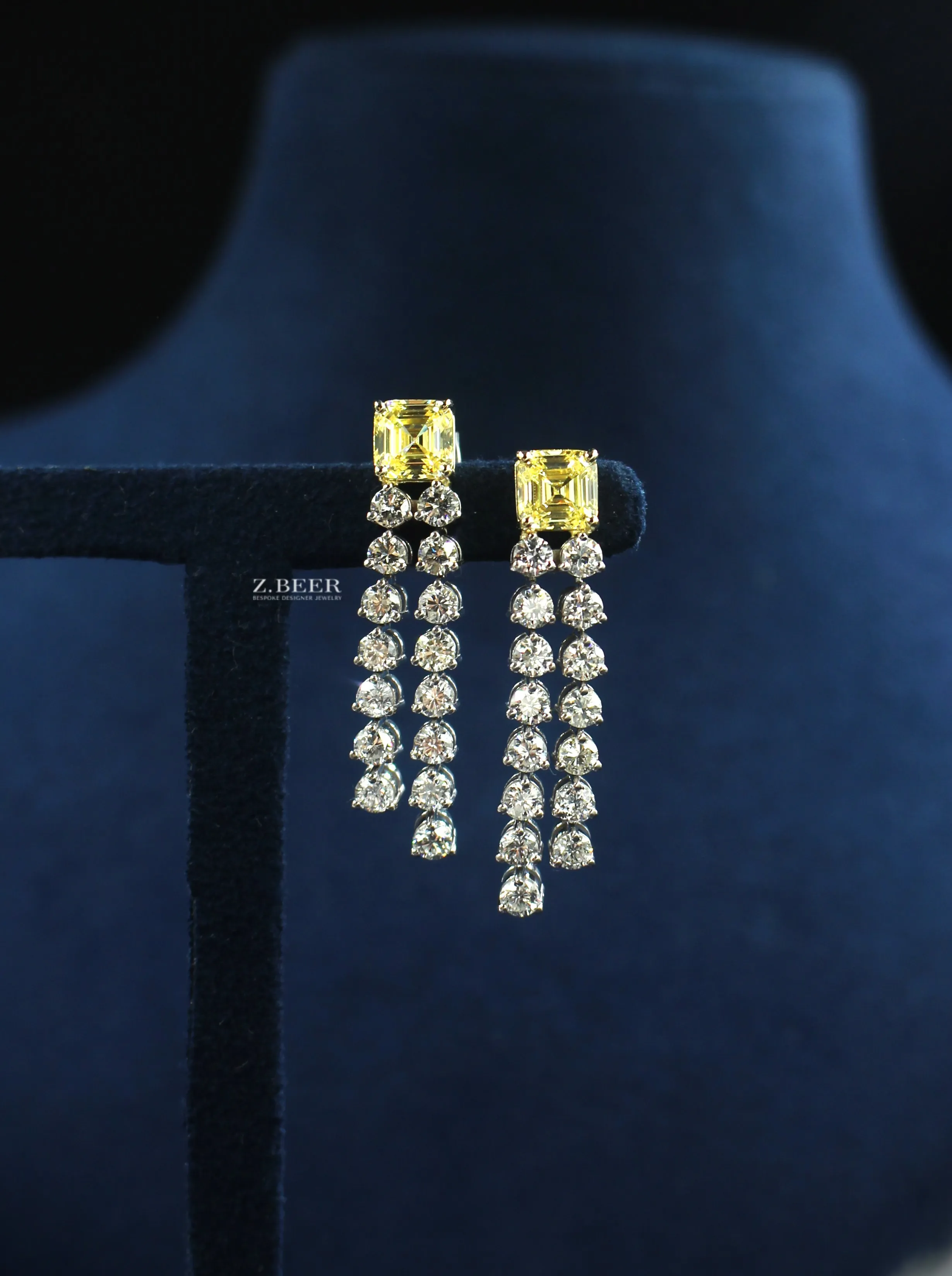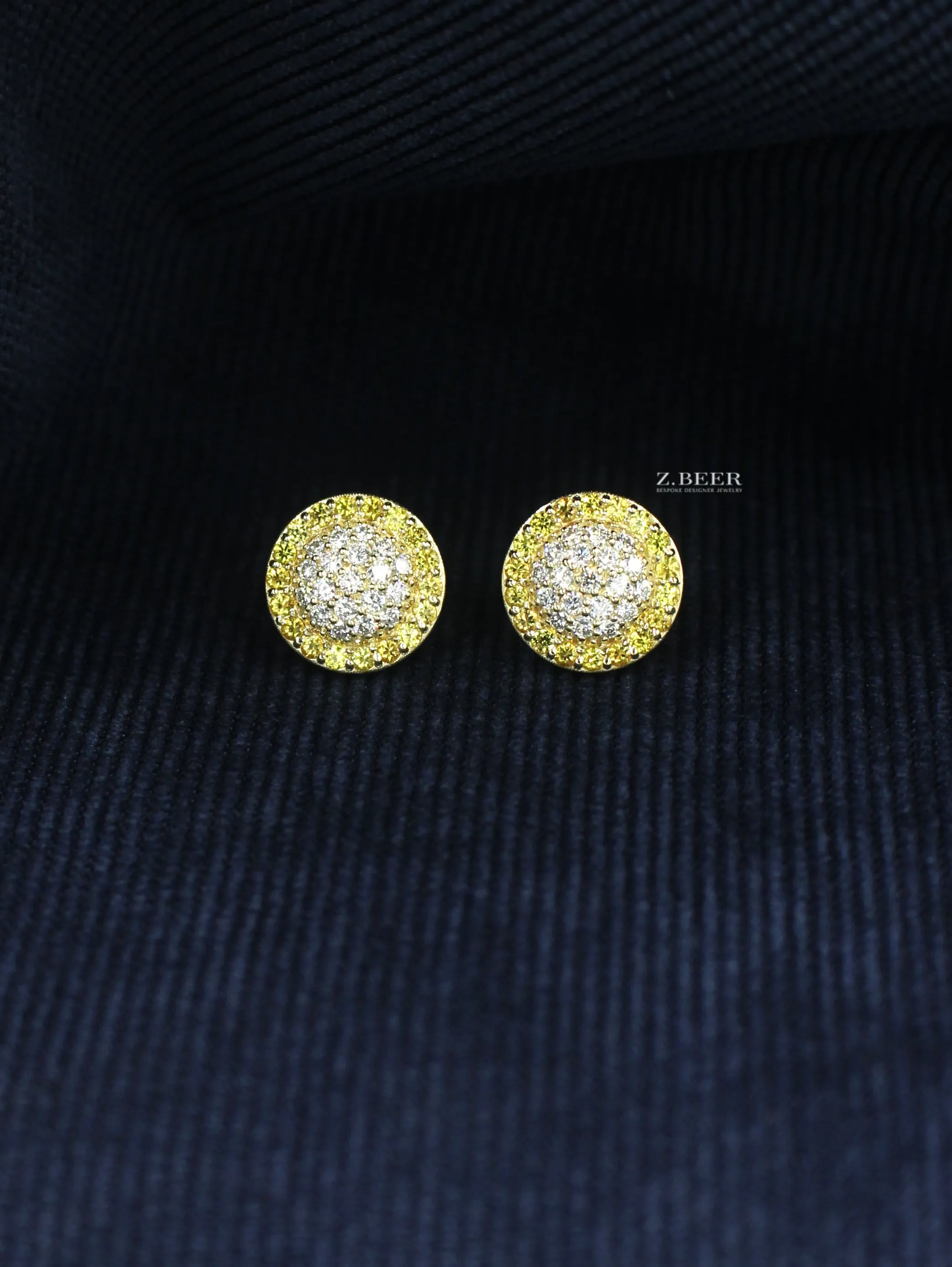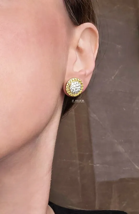 Stud earrings in 14K yellow gold, set with yellow and brilliant-cut round diamonds for a total of around 2.72 carat.